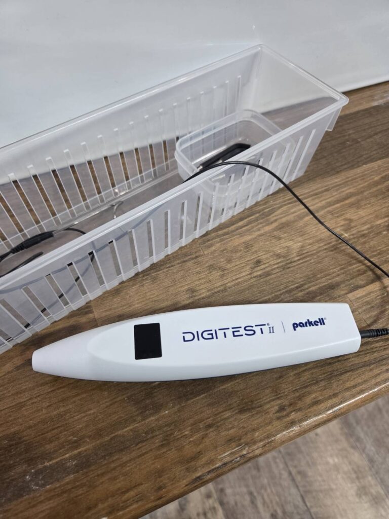 微弱な電気を流して、患歯に痛みがあれば神経が生きているという証拠だよ。