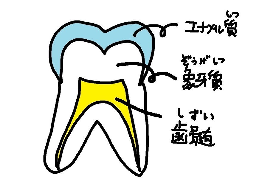 エナメル質ってとこに虫歯ができても硬いからあんまり痛みはないとん。